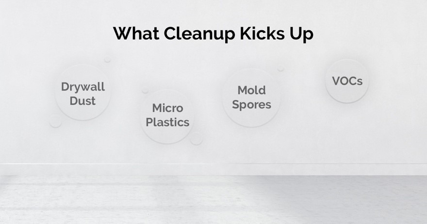 Airborne threats: Mold spores, bacteria, VOCs from wet materials, microplastics